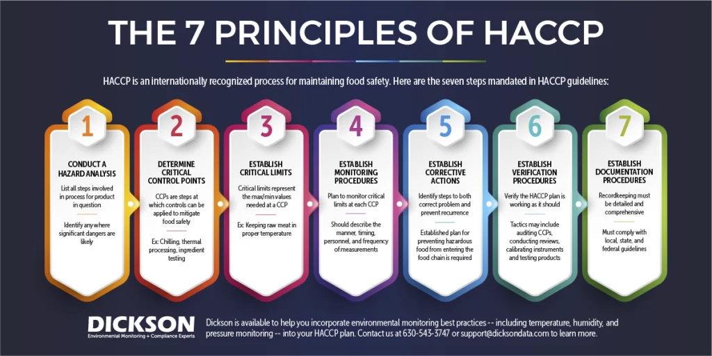 The 7 principles of HACCP create a food safety risk management system that provides the framework for monitoring the total food system for maximum safety. These