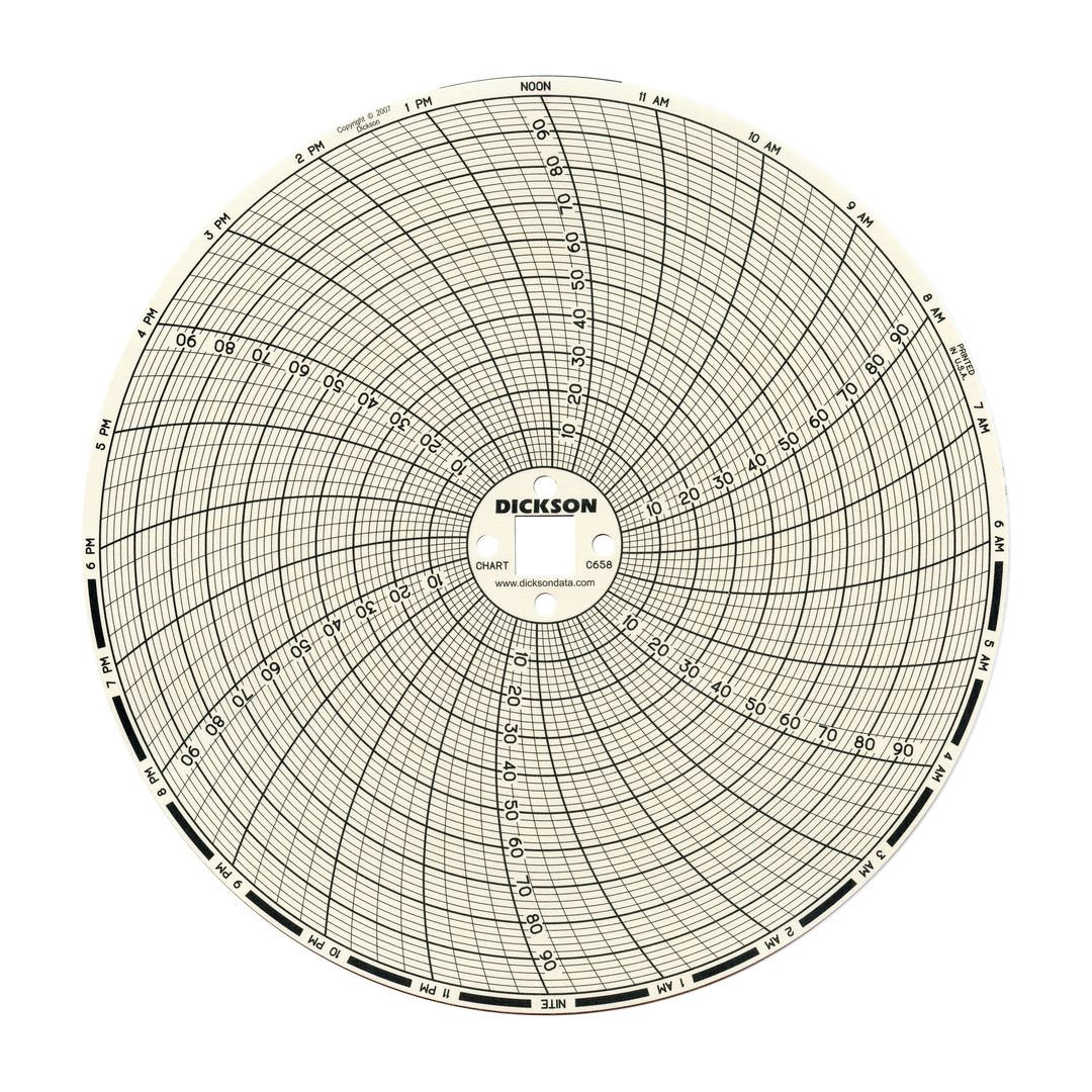 These 6″ charts come in packs of 60 and are designed for 6″ Chart Recorders. Only genuine Dickson charts are required for your chart recorder to read accurately.
