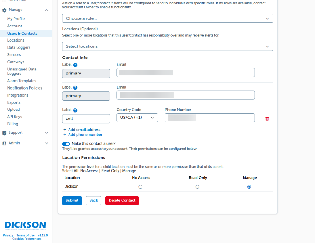 Each DicksonOne account has only one Account Owner by default. To add an additional Account Owner or transfer ownership, please have the Account Owner contact us at support@dicksonone.com or call 630.643.3747
