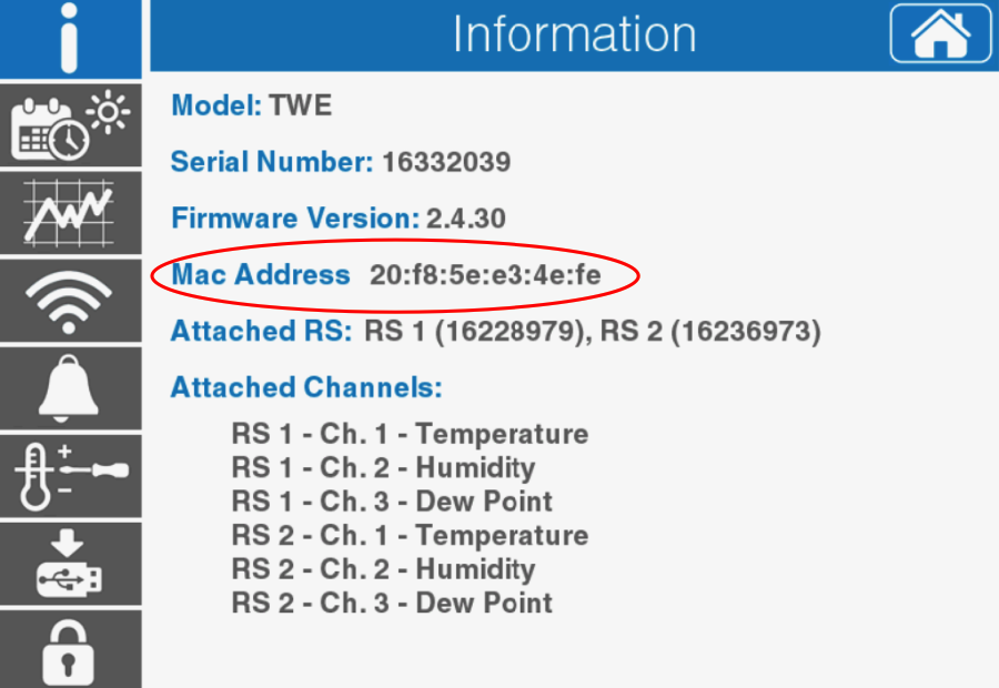 The MAC Address will only be displayed on DicksonOne after the device has been registered. If the device has not been registered to DicksonOne, please continue reading.