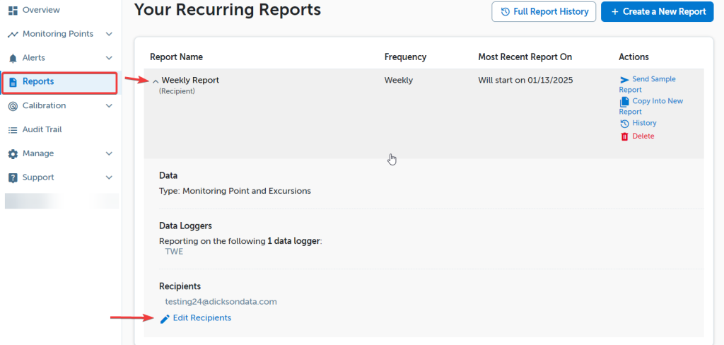 - The recipients on the report do not need to be users of DicksonOne, so the reports can be emailed to various recipients