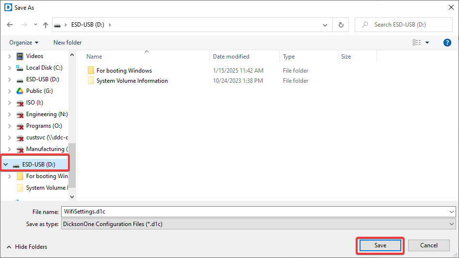 Plug your USB Flash drive into your computer and click Save Configuration