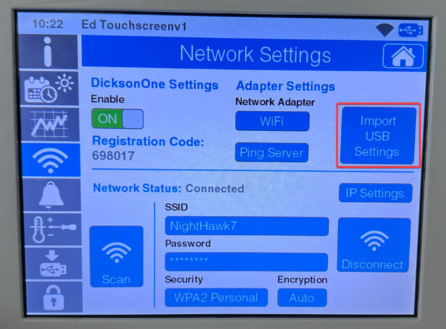 The WiFi configuration will be imported into the touchscreen and the device will connect to the internet on its own.