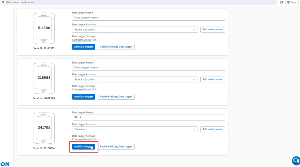 Log into your DicksonOne account and Click on +Add Hardware