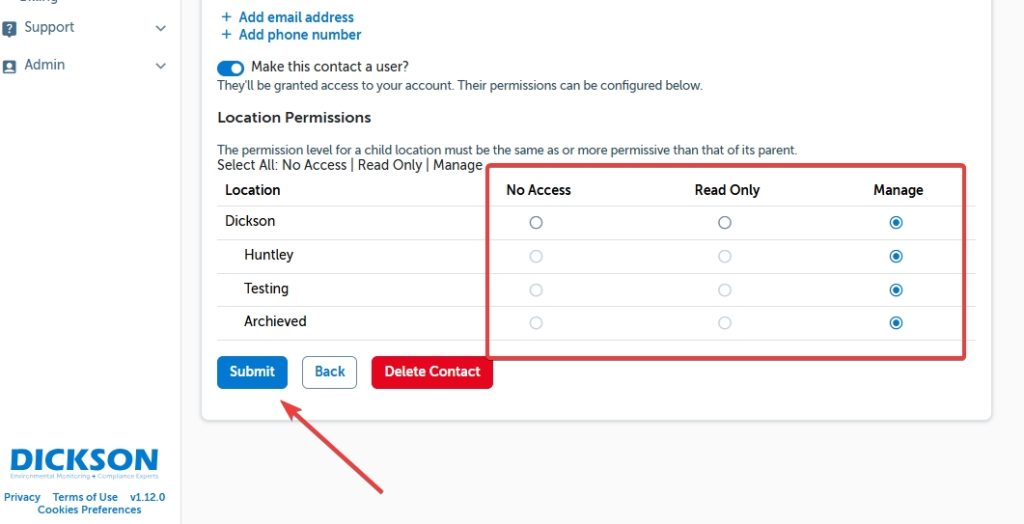 The DicksonOne system allows you the flexibility to mix and match the locations a user has access to, as well as the type of permissions the user will be granted.